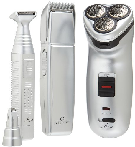 Eltron el-323 4 head rotary shaver + 2 pc ear/nose trimmer. Kit includes cleaning brush, and UL adapterEltron #el-323 Grooming Set with Ear and Nose Trimmer