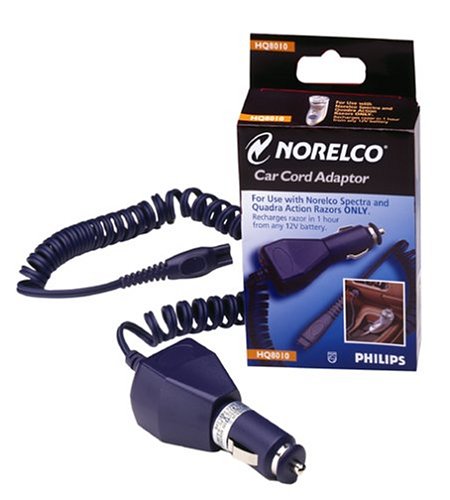 Just because you spend a lot of time in your car doesn’t mean you have to look ill-kempt. This car cord adaptor lets you recharge your Norelco shaver--Spectra or Quadra Action models only--in just one hour from any 12-volt car battery. Fitted with a space-saving coil cord, the adaptor plugs into a car’s cigarette lighter or power outlet. It also works with boat batteries, so you can be sure of looking crisp and clean-shaven on the open seas. Norelco includes a 60-day satisfaction guarantee and a 2-year warranty against defects. --Emily BedardPhilips Norelco Car Cord Adapter for use with Norelco SmartTouch-XL, Speed XL, 7100/7200 XLCC, Spectra and Quadra