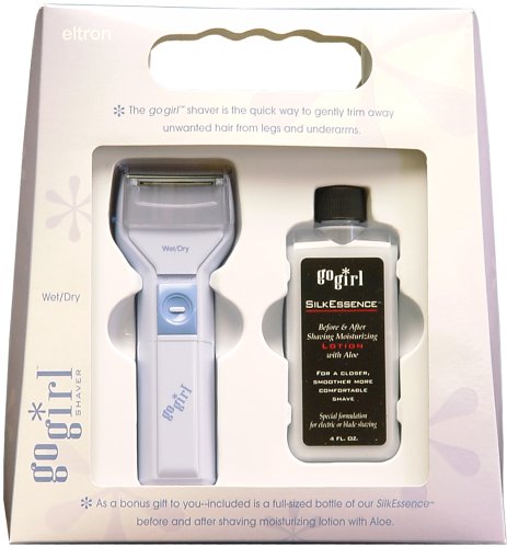 Eltron's new Go Girl Wet/Dry Shaver. Comes in an attractive gift box. Includes Parks Products new SilkEssence shaving lotion with Aloe.Eltron EL 9099 Go Girl Gift Set