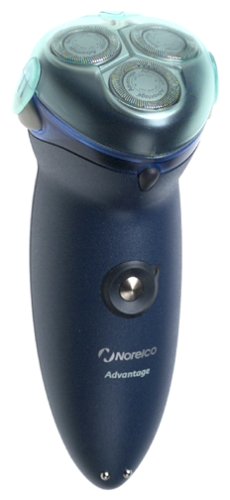 This water-resistant, 3-1/2-watt cordless electric razor shaves wet or dry facial skin while dispensing shaving lotion with the push of a button. It also automatically adjusts to facial contours with three individually floating self-sharpening stainless-steel shaving heads, provides 45 hair lifters and 45 rotating blades to shave below the skin, and comes with a full-width snap-on trimmer for mustaches and sideburns. It's perfect for the traveling man because the charging stand works worldwide on systems from 110 to 240 volts, the fully recharged razor provides 36 minutes of shaving time, and the razor fits in a travel pouch large enough to hold the razor and two additional lotion cartridges. Shaving lotion cartridges snap in easily, and pump buttons on both sides of the head dispense the lotion. (Six Nivea lotion cartridges are included.) The head rinses clean after use. Norelco provides a 60-day, full-refund satisfaction guarantee after two weeks of use and a two-year warranty against defects. --Fred BrackNorelco 5615X Advantage Wet/Dry Cordless Rechargeable Men's Shaver
