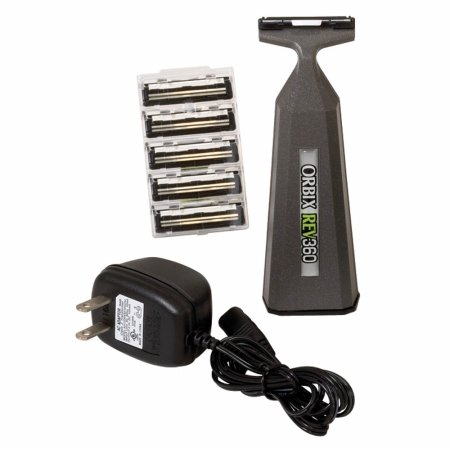 Finally you can dramatically improve your shave with the new Orbix REV360 razor. The REV360 razor utilizes a unique oscillating elliptical motion that is delivered directly to the head of the razor. This technology was developed by a former NASA engineer over a 5-year period. The secret is in the use of high quality motors circuits and state-of-the-art battery technology. The NiMH battery has no memory limitations and is rated to last more than 15 years in our razor. This is a great feature considering the incredible amount of disposable batteries going into our landfills and reservoirs. The REV360 is the world's first and only rechargeable elliptical razor. It utilizes a simple yet affordable quot;Easy Rinsequot; twin blade cartridge that outperforms the most expensive 3 4 and 5 bladed systems. The powerful elliptical motion causes the blades to literally float over the skin eliminating the most common causes of nicks cuts bumps and irritation while delivering an incredibly smooth shave. The REV360 is engineered to utilize any affordable Trac ll type blade cartridge; however the Orbix quot;Easy Rinsequot; twin blade cartridges are superior in quality and cost approximately 40% less than the Gillette brand. The result of this technology is a smooth and comfortable nick cut bump and irritation free shave that any man will appreciate. The smooth floating action of the head allows the razor to cut the hairs without affecting skin irregularities such as keloids acne and shaving bumps caused by ingrown hair also known as (PFB's). Check out the blogs and user groups on the internet there are hundreds if not thousands of them. You will find that the big boys have yet to solve the most common yet simple shaving problems afflicting mankind. We believe the Orbix REV360 has! The REV360 is the best kept secret in the shaving industry. We put our money where our mouth is. Try the Orbix REV360 razor for 30 days. If you are not completely satisfied with yOrbix International OREV360PE REV360 Razor - Pewter