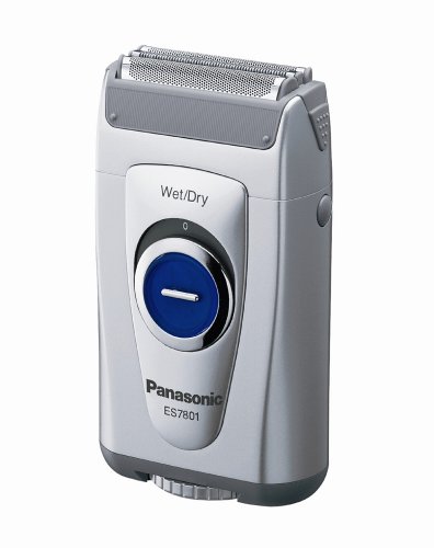 A sleek, compact shaver that can be used either in or out of the shower, this Panasonic gives a clean, close shave every time. Three individual floating heads automatically adjust to the curves of your face. Rechargeable lithium batteries provide up to two hours of shaving time--that s two months of shaves before you ll need to recharge again. At a little less than four inches in height, and three inches in width, this shaver makes an excellent travel companion. The shaver comes with a travel pouch and two rechargeable lithium batteries. The Panasonic ES7801S Sonic-3 Men's Compact Travel Shaver is battery operated and designed for travel anywhere you go. Batteries can provide up to 60 '3-minute' shaves Includes travel pouch Dimensions (H x W x D) - 3.9 x 2.3 x 1.2 Weighs about 5.3 ouncesPanasonic ES7801S Triple Blade Wet/Dry Men's Shaver, Silver Specifications