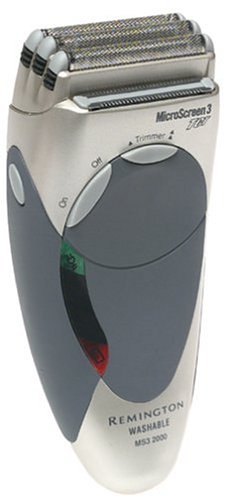 With three screens that flex up and down and side to side and more blades than regular shavers, this electric razor from Remington delivers a fast, smooth shave while operating either plugged in or on its rechargeable battery. Its trimmer has three positions: one retracted, another for cutting long hairs before the screens cut short hairs, and a third for trimming mustaches, sideburns, and necklines around a beard. When shaving and trimming is completed, you can rinse this shaver under running water, a distinct advantage over shavers that require meticulous brushing. For a single shave, the electric razor charges in just five minutes. (A full charge takes one hour.) The shaver fits the hand comfortably, and it comes with its own travel pouch. Remington offers a full-refund satisfaction guarantee within 30 days, and warranties the shaver for two years against defects. --Fred BrackRemington MS3-2000 MicroScreen 3 TCT Men's Shaver