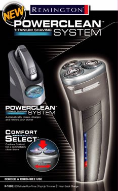 For a comfortably close shave, choose the PowerCleanTM Titanium1000 shaving system from Remington. Featuring the Triple ComfortFlexTM design, this shaver contours to your face for optimal contact. Its ComfortSelectTM suspension system guarantees a shaving experience unlike any other. Includes cleaning base that automatically cleans, charges, and renews your shaver after each use.Remington R-1000 Microflex Shaver