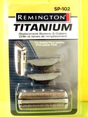 Remington SP-102Replacement TitaniumScreen/CutterBrand New! Factory Sealed!Product Features * Replacement Titanium Screen/Cutter for Models F710 / F720Remington SP102 Replacement Titanium Screen/Cutter